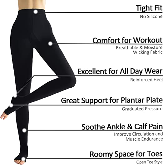 - The open-toe design enhances comfort by keeping the toes free while still providing support across the rest of the leg
