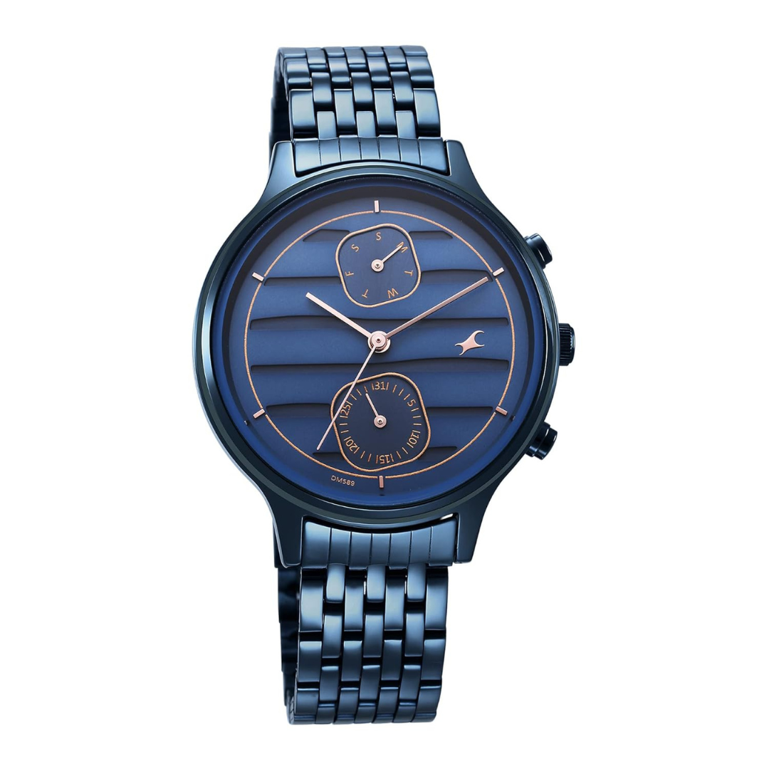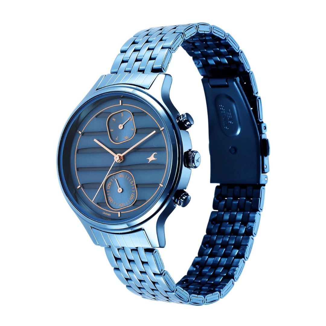 Fastrack Style Up Blue Dial Stainless Steel Strap Watch for Girls