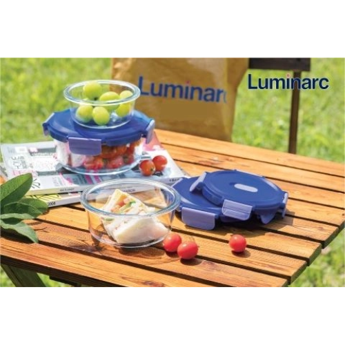 Luminarc Pure Box Putina Glass Storage Box with Lid Round Set of 3 (400ml + 650ml + 1000ml)