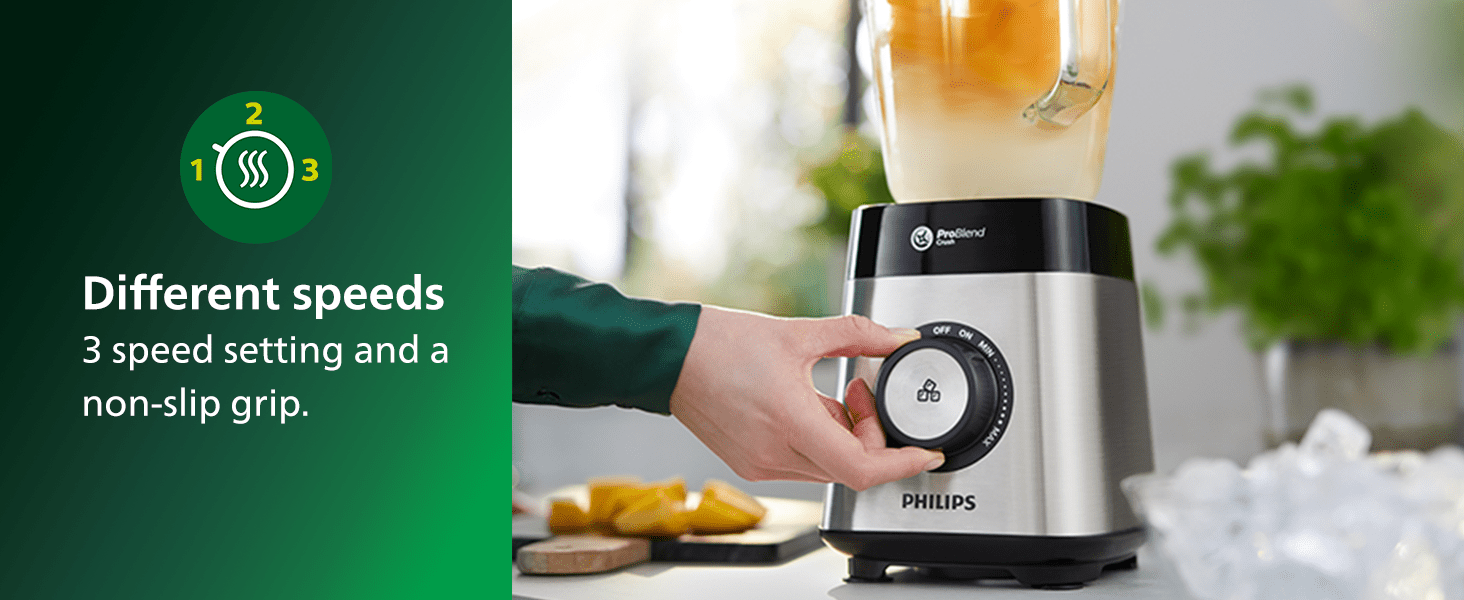 Our control dial is molded with non-slip grip, so you can easily control the blender speed. From gentle blending for soft fruits – to a burst of power for harder fruit and vegetables. It’s up to you with our manual speed control.