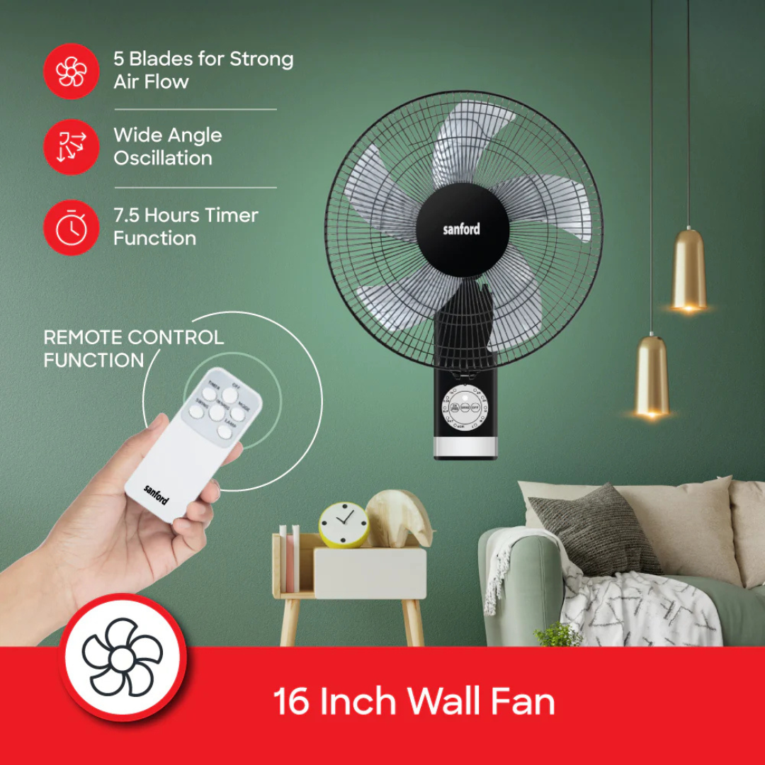 The Sanford 16" Wall Fan with Remote Control delivers powerful airflow and modern convenience for any home or office. Built with a 100% copper motor operating at 1300 RPM, it provides high efficiency, long life, and consistent cooling even during hot conditions.