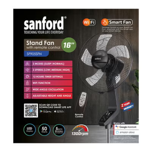 Discover next-level comfort with the SANFORD SF905SFN 16-Inch WiFi Smart Stand Fan, a perfect blend of smart technology, style, and superior cooling power. Designed for modern Kenyan homes, this fan offers effortless control, powerful airflow, and whisper-quiet performance for everyday use.