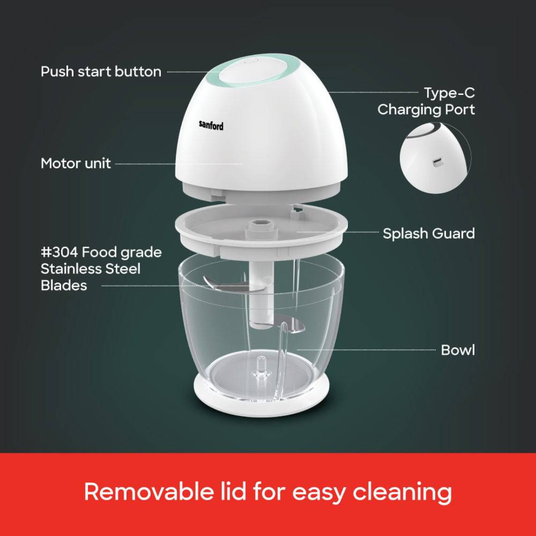 Powered by a rechargeable battery with USB-C charging, it allows cordless operation, making food prep more flexible and efficient. The removable lid design makes recharging and cleaning simple, while the one-touch button ensures smooth, quick chopping every time.