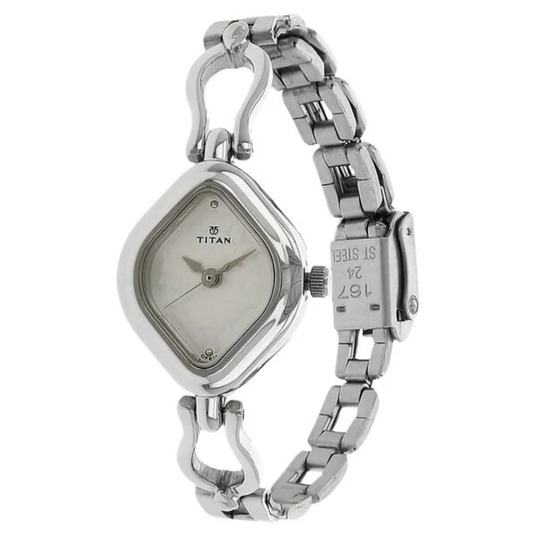 This Titan ladiesβ watch features a stainless steel strap with an interconnected U-pattern, offering both comfort and a modern look. The 3-piece sliding clasp provides a secure fit, while the quartz movement guarantees precise and reliable timekeeping. With 3 ATM water resistance, this watch is safe from everyday splashes, making it a practical yet stylish choice.