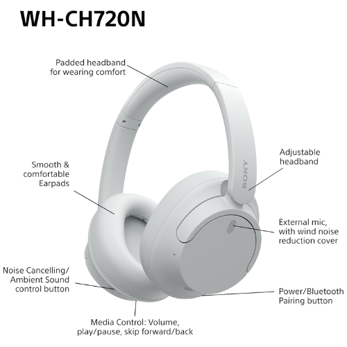 Sony Noise Cancelling Wireless Headphones WH-CH720N White