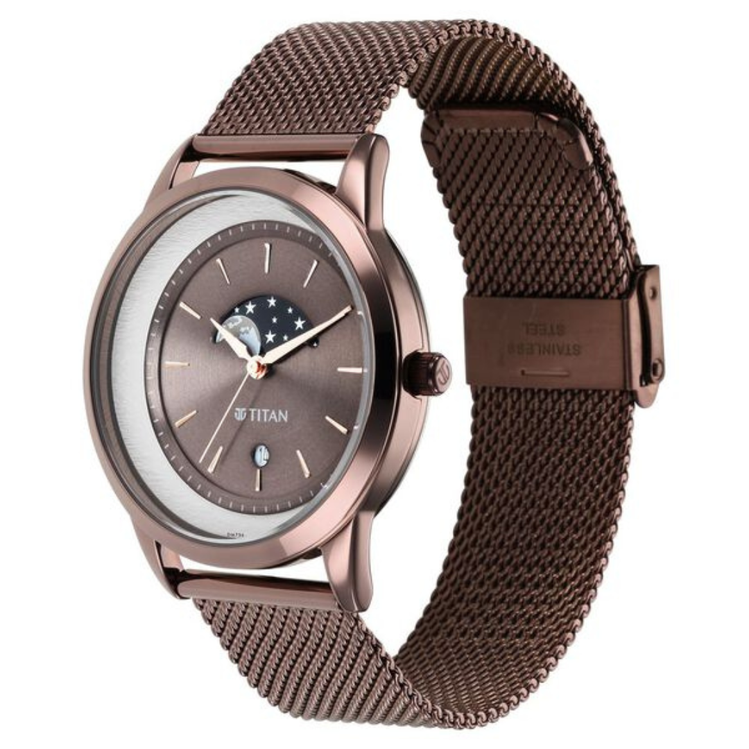 Titan Crescent Brown Dial Stainless Steel Strap Watch for Men