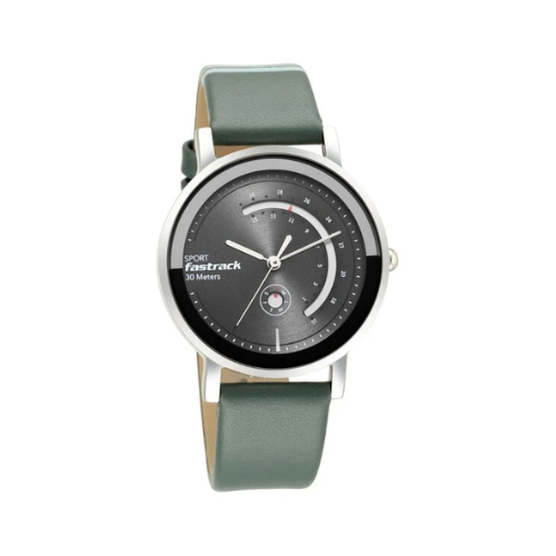 Designed for the confident, trend-forward girl, this watch combines elegance with functionality. The grey dial beautifully contrasts with the stylish green leather strap, creating a fresh, modern look that elevates any outfit — from casual to classy.