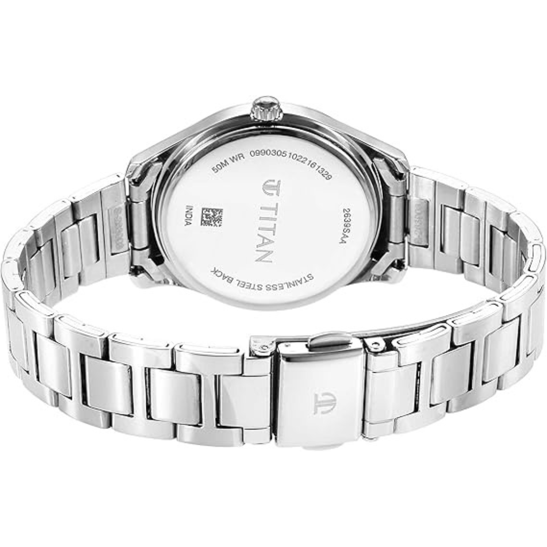 Built with a durable brass case and powered by a precise quartz movement, this Titan women’s watch ensures lasting performance. Its minimalist yet graceful design makes it a must-have for women who value functionality with elegance.