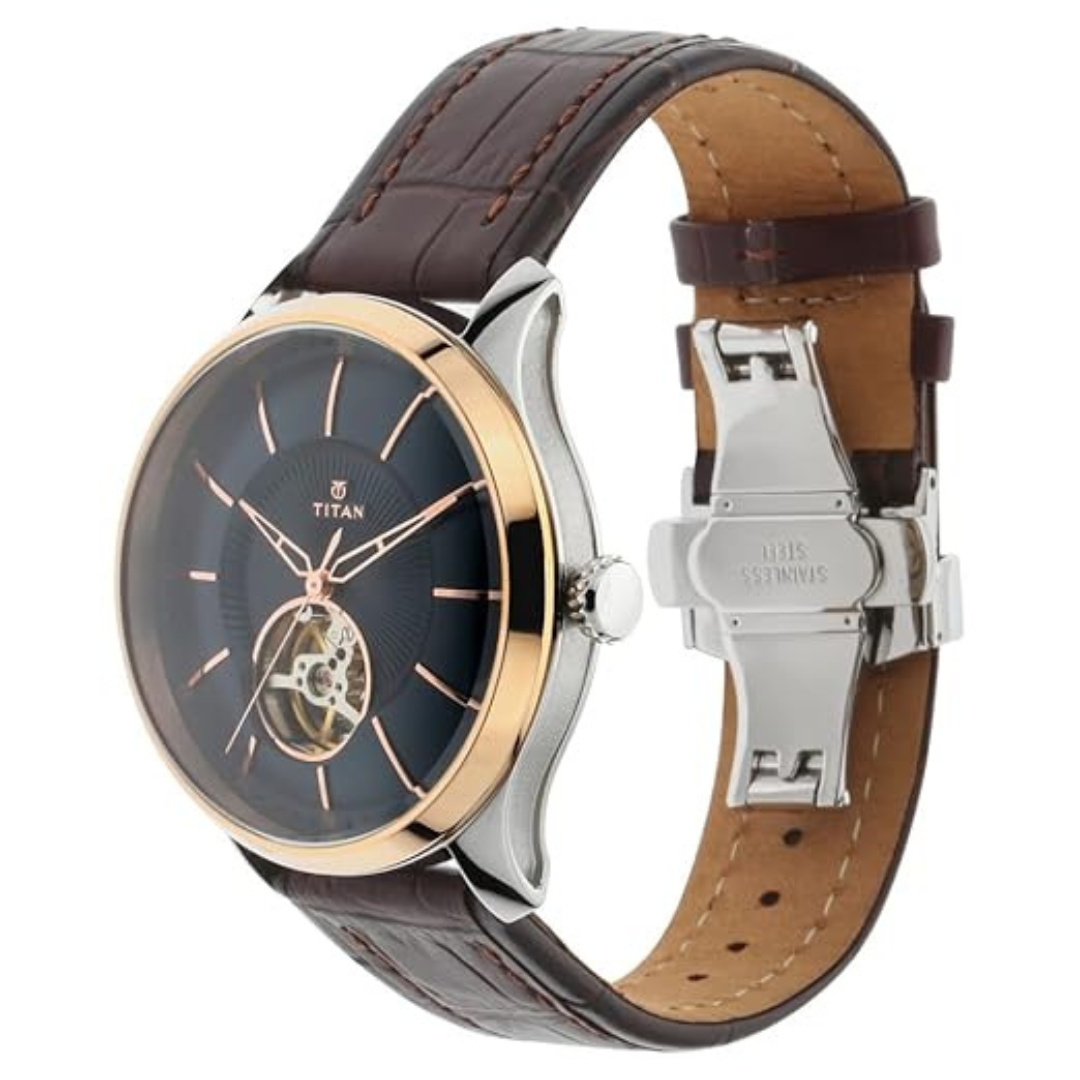 Experience true craftsmanship with the Titan Magnate Blue Dial Automatic Leather Watch for Men â a blend of precision engineering and elegant design. This Titan menâs watch features a self-winding automatic movement, allowing it to power itself with your natural wrist motion â no batteries required.