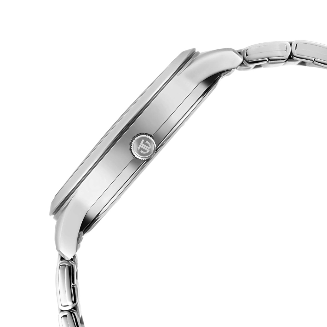 The watch includes a date display, housed in a robust metal case with a polished finish. Its silver-tone metal strap delivers durability while complementing the sleek dial design. Equipped with a clasp closure and 5 ATM water resistance, this timepiece is built for everyday reliability. Backed by a 24-month warranty, the Titan Minimals ensures lasting performance and style.