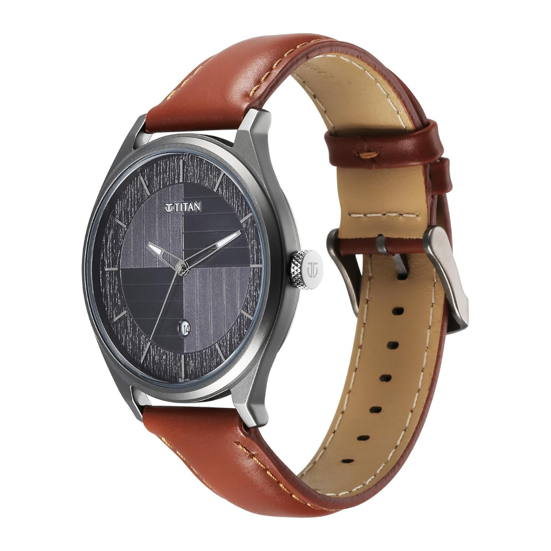 Step up your wrist game with the Titan Neo Economy IV Grey Dial Analog Watch for Men, a perfect blend of contemporary design and everyday functionality. The grey round dial with a date window at 6 o’clock exudes sophistication, while the brown leather strap adds a warm, classic contrast for a refined look.