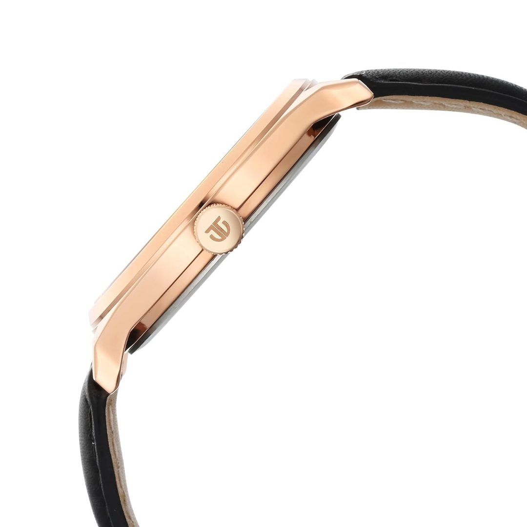 The black leather strap adds a touch of class and comfort, while the Quartz movement ensures precision every time. Its date display function keeps you on track throughout your day. Built with 5 ATM water resistance, this watch can handle everyday splashes and brief exposure to water.