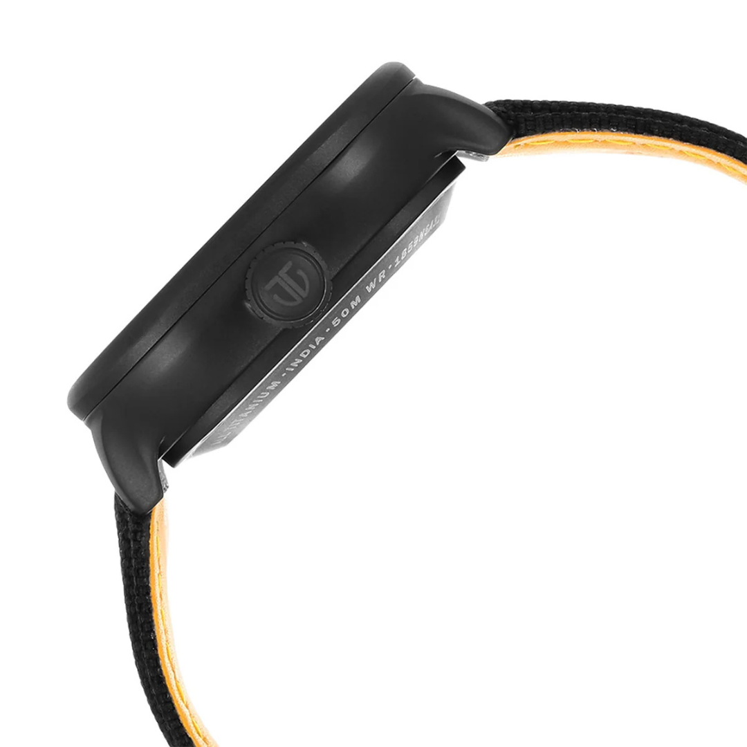 The Titan Octane Aerobatics Black Dial Fabric Strap Automatic Watch for Men is a perfect fusion of innovation and style. Featuring a sleek black dial paired with a durable fabric strap, this luxury timepiece delivers both modern elegance and sporty appeal. Crafted with a titanium case, it offers unmatched strength while remaining lightweight for comfortable wear.