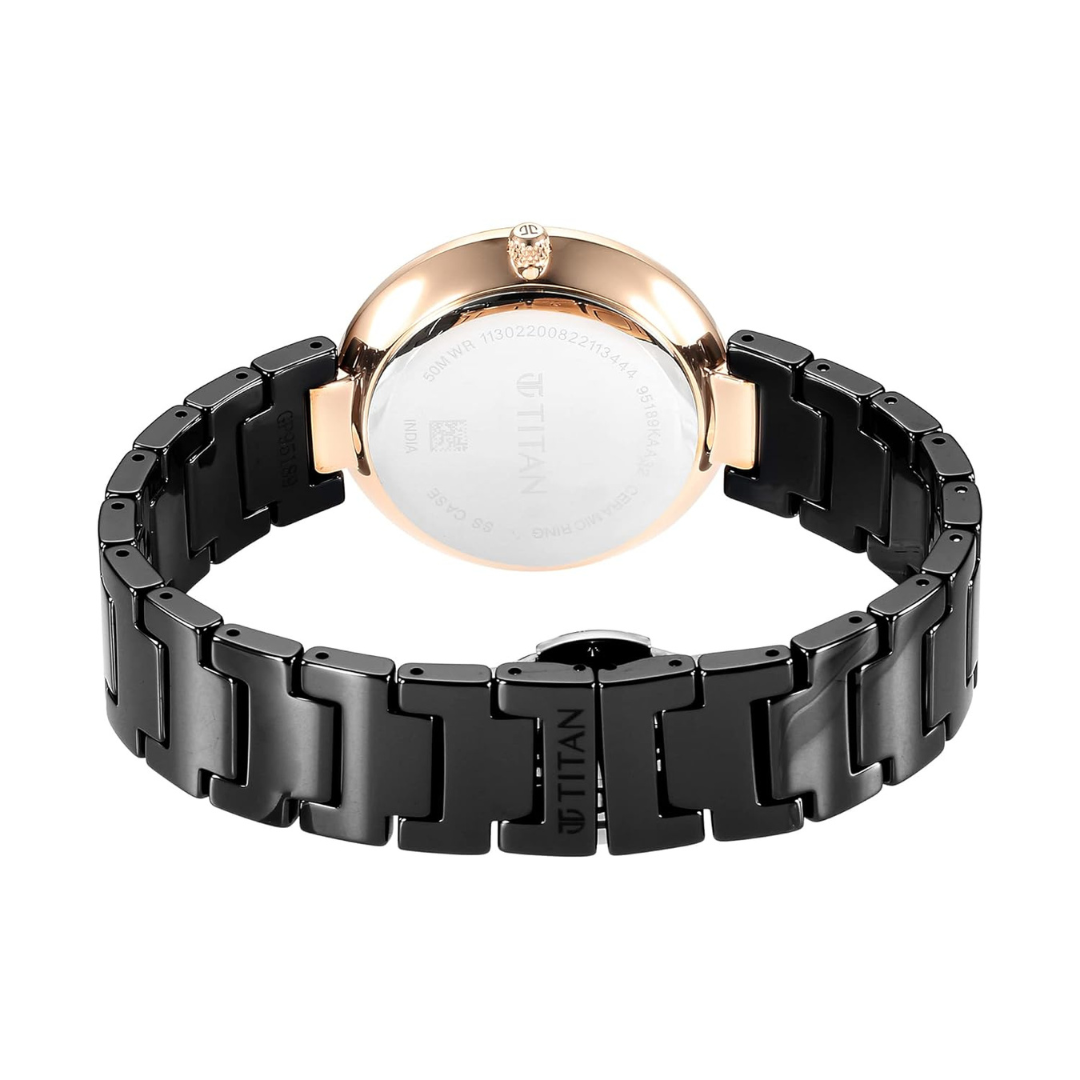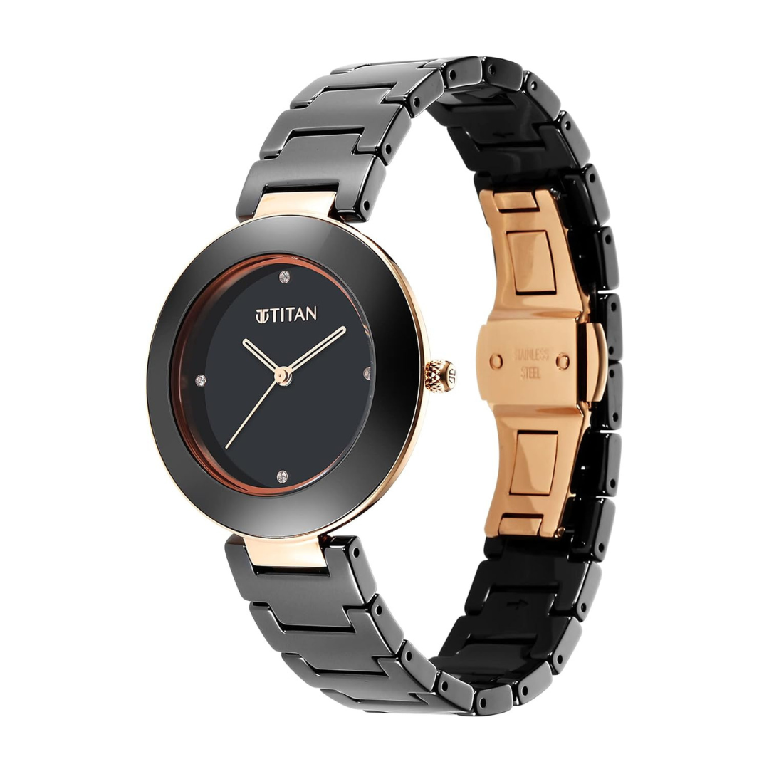Titan Purple Ceramics Black Dial Ceramic Strap Watch for Women