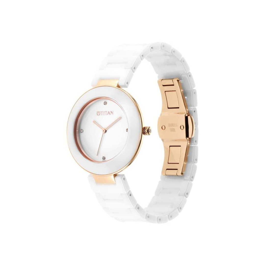 Titan Purple Ceramics White Dial Ceramic Strap Watch for Men