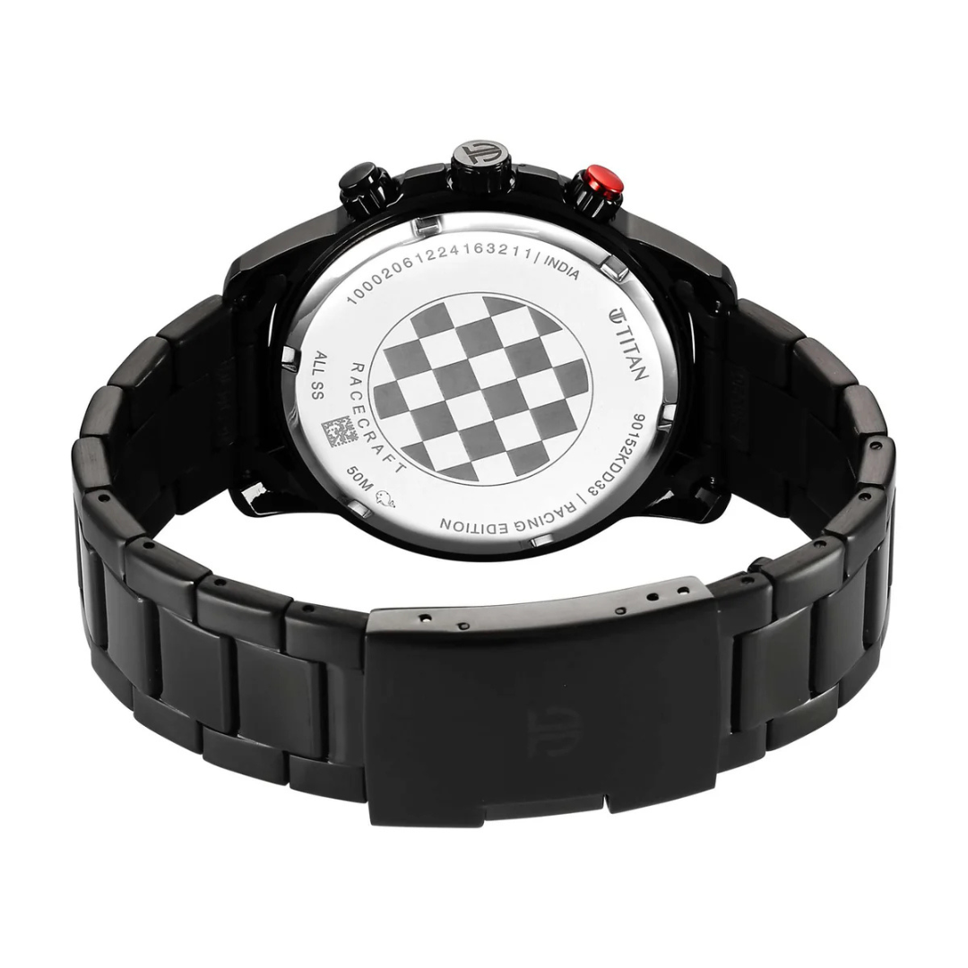 Experience speed and sophistication fused in one masterpiece — the Titan Race Craft Dual Tone Chronograph Watch for Men. Built with a stainless steel dual-tone bracelet, this timepiece commands attention while maintaining a refined edge. Its black dial, highlighted with intricate chronograph sub-dials, captures both power and precision.