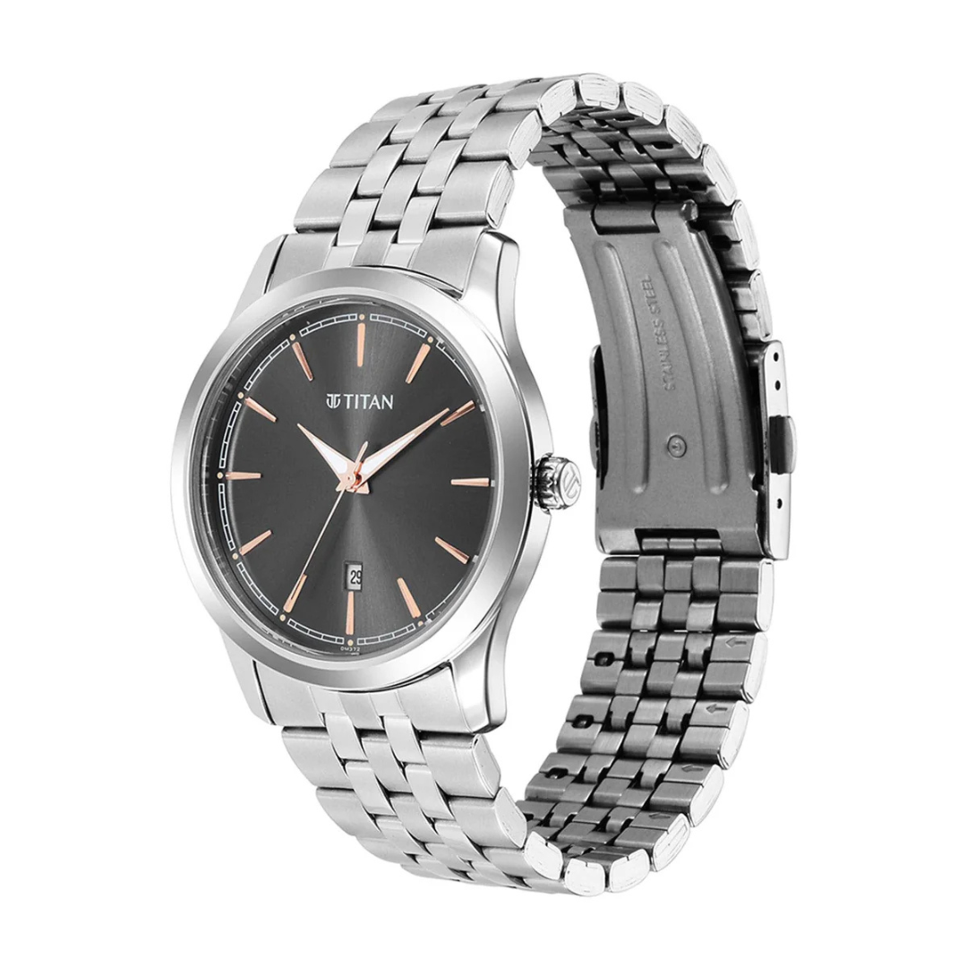 The Titan Trendsetters Anthracite Dial Analog Watch for Men is the perfect blend of modern style and reliable performance. Featuring a striking anthracite dial, this watch delivers a refined aesthetic that complements both casual and formal outfits.