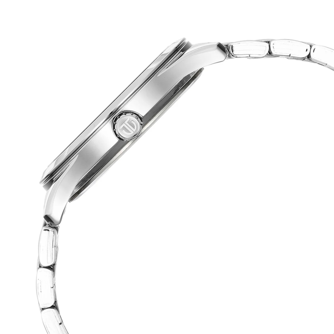 Crafted with stainless steel for both durability and elegance, the watch houses precise quartz movement and a practical date display at 6 o’clock. Its push-type clasp offers secure wearing comfort, while the 5 ATM water resistance makes it perfect for daily use.